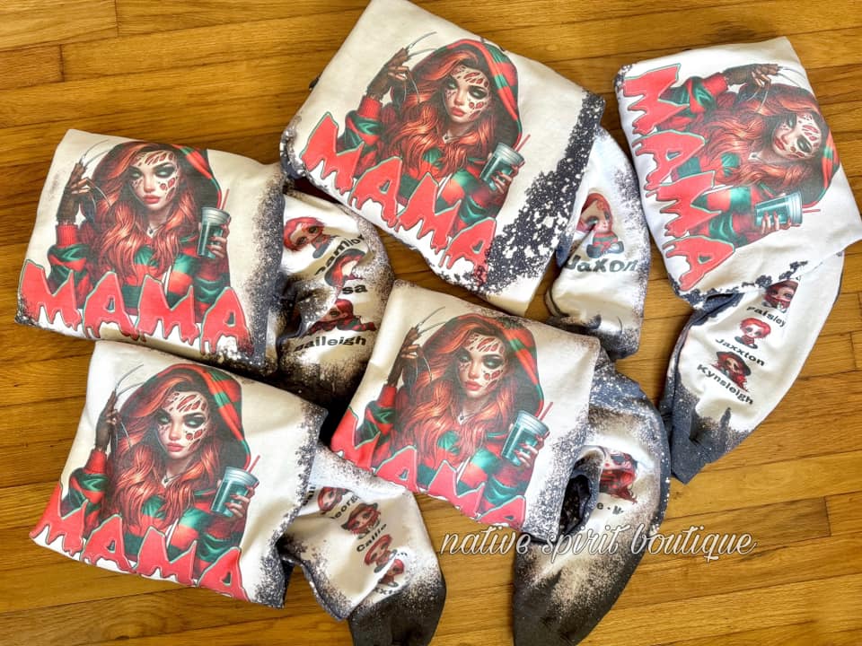 Please note this is a hand bleach item with sublimation transfer images. Each bleached item will look different from the next and may look different from the images shown depending on how many kids are added to the item. Please note current turn around time (TAT) is sitting around 20 business days to ship. This will vary greatly on weather as these need to bleached when order is placed!